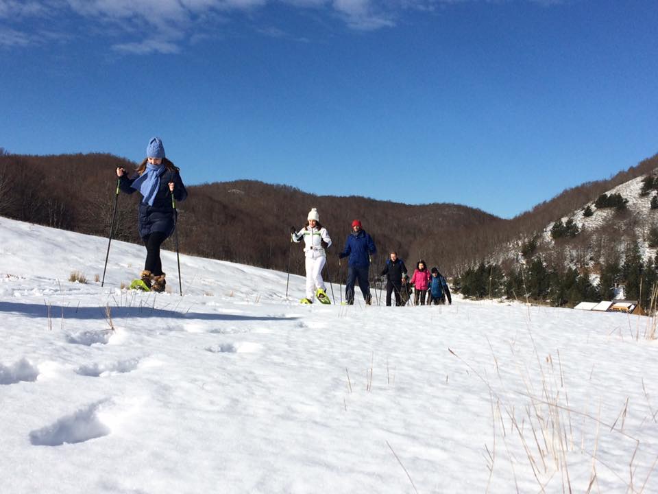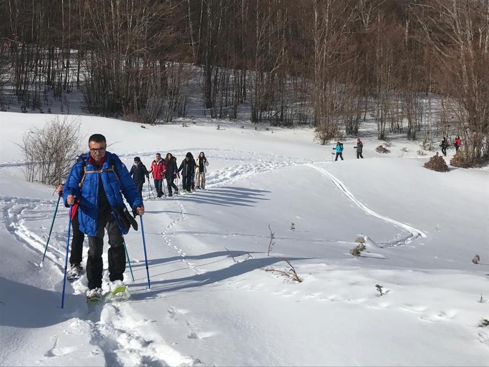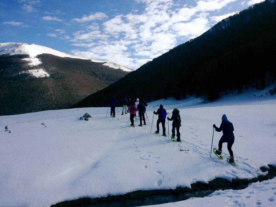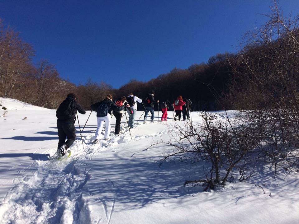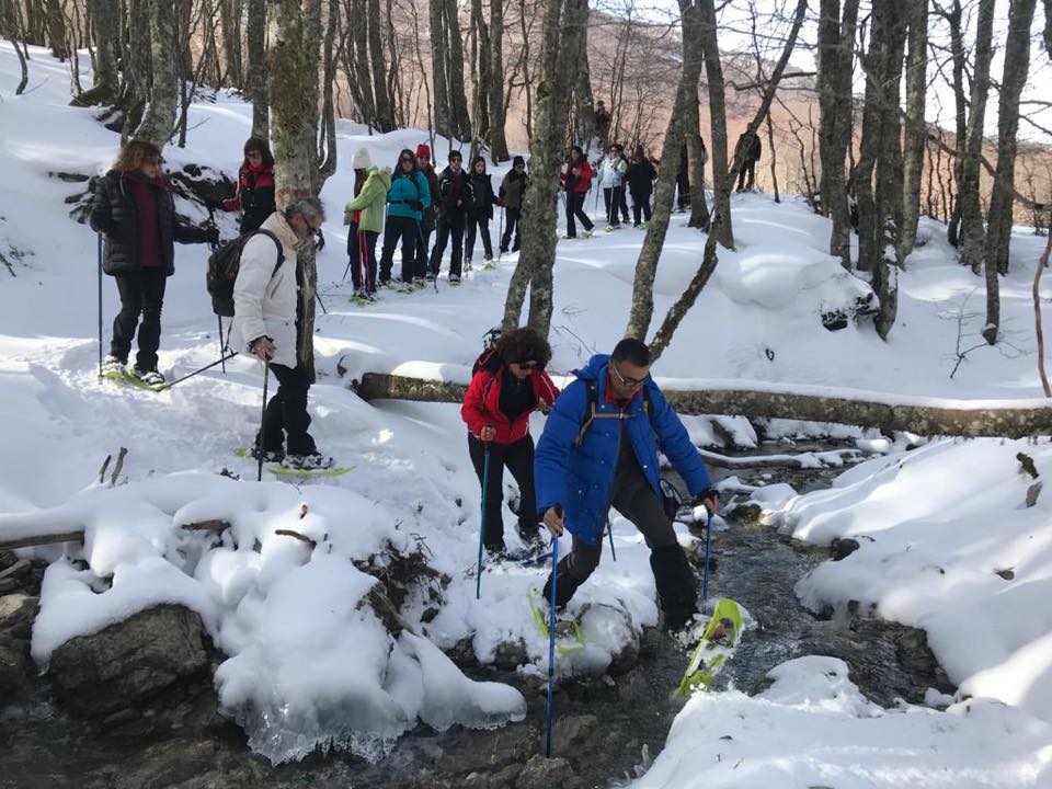 Al mattino dopo un abbondante prima colazione, a base di dolci e crostate, si parte per la montagna con i mezzi fuoristrada del Centro Escursioni. Arrivati sui pianori, accompagnati dalle guide, con le ciaspole ai piedi si percorrono sentieri alla scoperta della flora del Parco Nazionale del Pollino e della fauna grazie alle innumerevoli tracce sulla neve lasciate degli animali selvatici. Si può scegliere tra passeggiate semplici o escursioni di media difficoltà per godere del panorama sulle cinque cime del massiccio del Pollino che superano i 2000 metri.