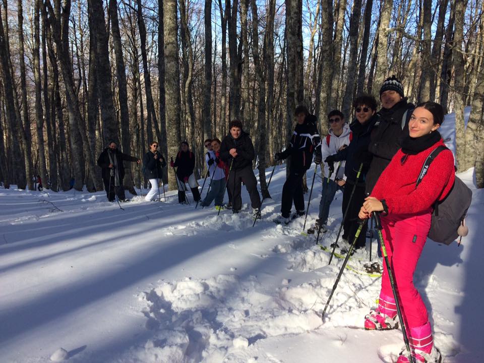 Nelle vacanze natalizie, tra Natale e Capodanno, la neve è caduta nel Parco Nazionale del Pollino. Dai 1400 metri sul livello del mare tra Piano Visitone, Colle Impiso e Piano Ruggio di Viggianello (Pz) la coltre bianca ha già raggiunto i 20 cm e i nostri ospiti, accompagnati dalle Guide Ufficiali del Parco Nazionale del Pollino, come da programma, hanno goduto della bellezza dell’inverno inforcando le ciaspole (racchette da neve).
