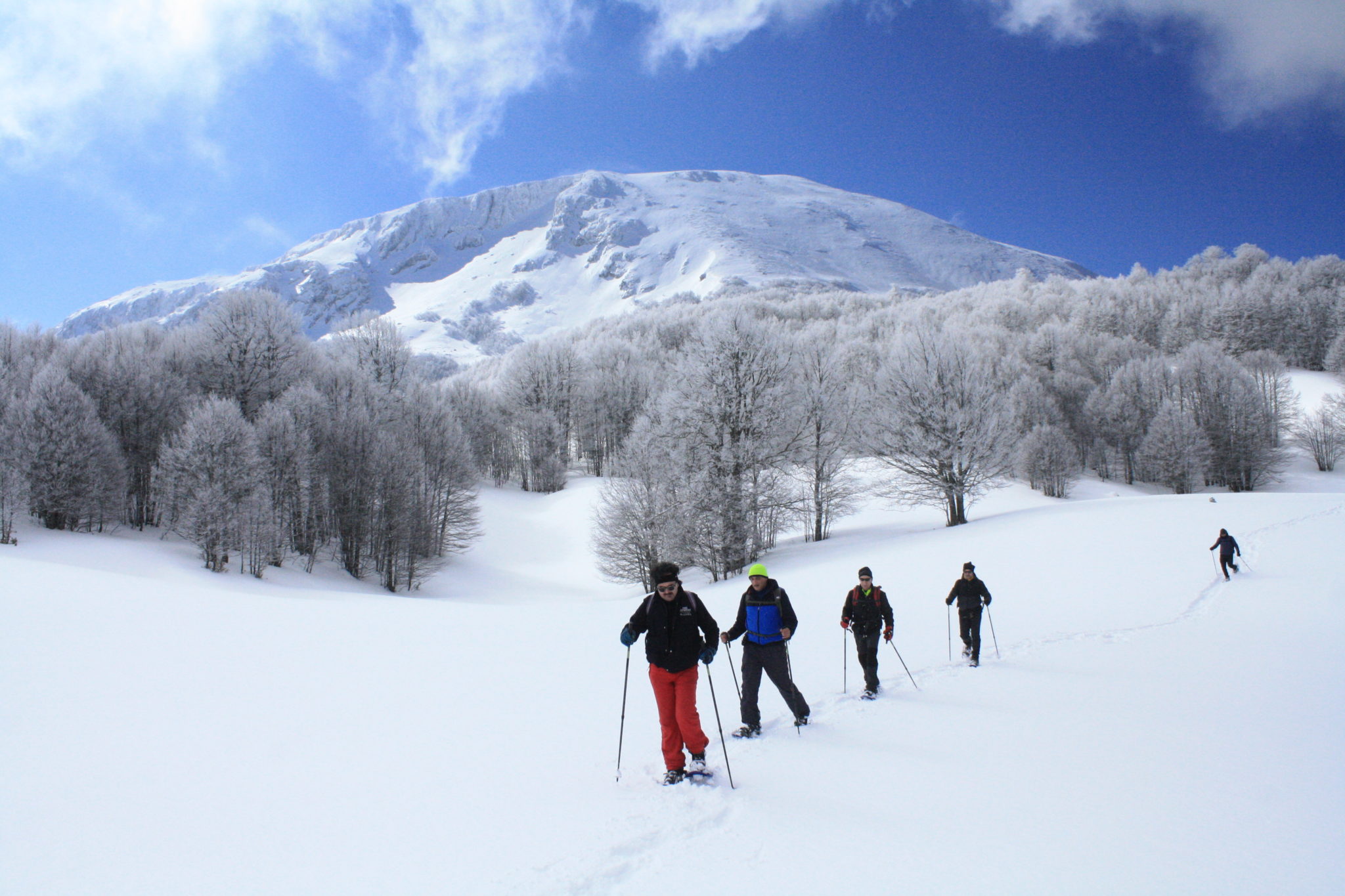 La ciaspolata in base all’innevamento si svolgerà tra Piano Visitone (1400 m slm) – Colle Impiso (1560 m slm) oppure nel bosco di Serra del Prete.